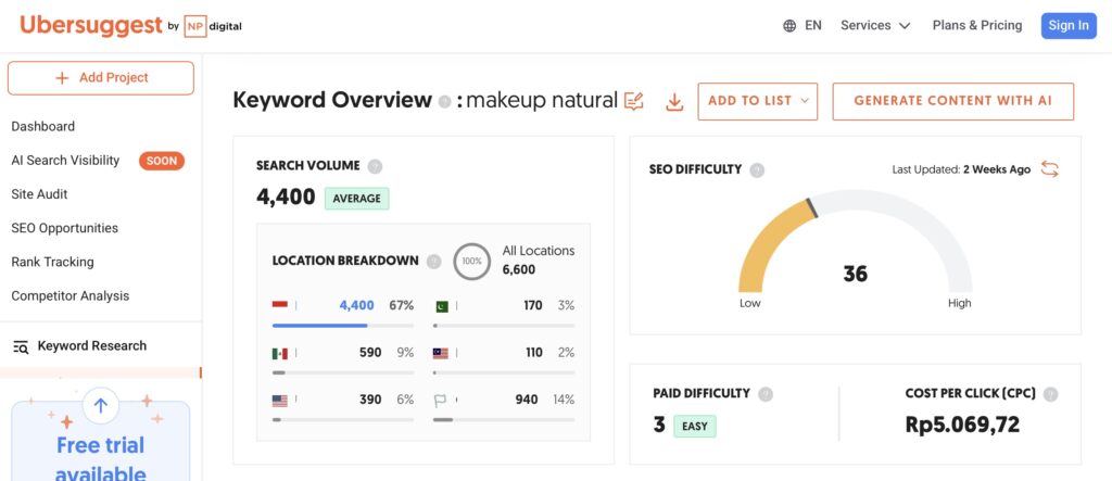 4. Gunakan Ubersuggest (Versi Gratis)